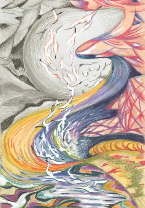 Слышались грозные и зловещие звуки. Его мощное тело яростно скручивалось в воронку. Огненным грозовым поясом он пытался сдержать движение свободных птиц и захватить их в свой безжалостный плен.
