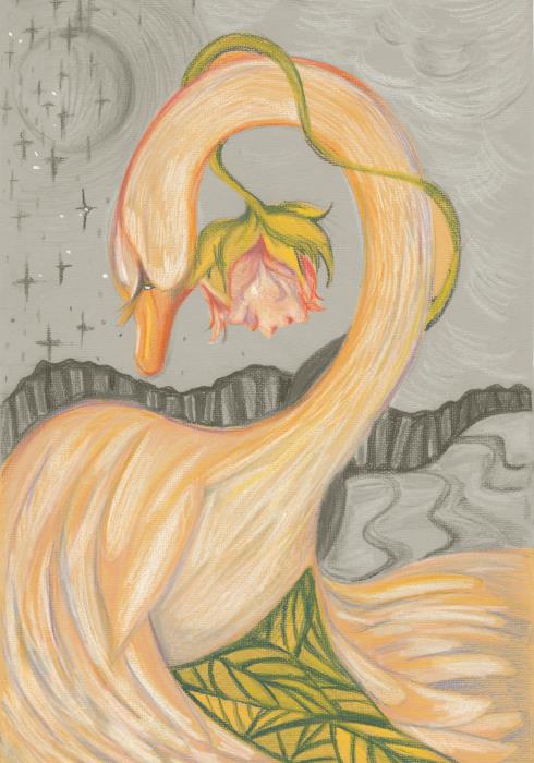 Ами мило склонила свою прелестную головку и слегка коснулась лепестками белоснежного оперения птицы.
