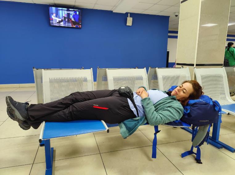 Лететь было некомфортно, ночь, очень мало места для ног, все затекло :)) когда мы выгрузились в аэропорте Барнаула, я первым делом улеглась на лавки, чтобы вытянуть ноги!