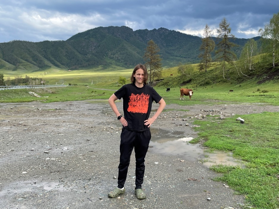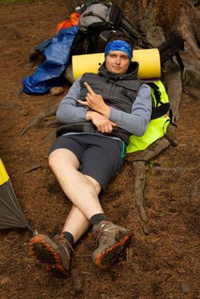 Этот человек достоин отдельного рассказа) Парню 27 лет, он из Нижнего Новгорода. Егора я приметила еще в самолете просто потому, что к нему подкатил другой парень, слегка не в себе, он ко всем цеплялся, что меня немного напрягло, но без агрессии с его стороны. Егор прилетел на Алтай один, как он сам сказал, «за красивыми видами». Но мне почему-то кажется, что не только за этим. Он мужественно боролся с собой, карабкаясь с гору, не останавливался, когда было особенно тяжело, когда не хватало воздуха и, казалось, легкие сейчас выпрыгнут их горла. Егор приехал испытать себя, нет так ли?)) «Всем привет, я Егор»,– сказал он, откинулся в кресле, заткнув уши наушниками и завалился спать). Позже выяснилось, что Егор купил и тут же забыл дома налобный фонарик.. Хорошо, что по пути в магазине нашелся подходящий, и нам не пришлось еще куда-то заезжать. Егор выглядел по началу немного неуклюжим, xenm полноватым, высоким и безалаберным. Человек в целлофановом фиолетовом дождевике, рваном, но зашитом «наживую»)) Егора все время теряли, ждали, немного подтрунивали над ним, но всегда по-доброму) Но все это время он излучал позитив, проявлял самоиронию и прекрасное чувство юмора) Позднее, разговорившись с ним, я узнала, что он получил высшее образование в Университете НН (не помню точное название) по специальности что-то связанное с программным обеспечением БЛА. Сейчас работает в IT. Он ломал ВСЕ cвои конечности) 2 раза на физре, а один раз прыгнув с крыши бани в замёрзший сугроб)) Человек-катастрофа, но при этом умный, начитанный с отличным музыкальным вкусом и чувством юмора.