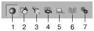 Категории объектов соответствуют кнопкам со значками, которые расположены сразу под вкладками.