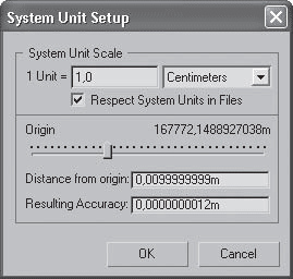 Поскольку в данной книге все размеры указаны в сантиметрах, установите переключатель в положение Metric (Метрические) и в раскрывающемся списке выберите вариант Centimeters (Сантиметры). Чтобы установить единицы построения 3ds Max, нажмите кнопку System Unit Setup (Настройка системных единиц измерения). Откроется дополнительное диалоговое окно, в котором можно задать системные единицы (рис. 2.2). При этом осуществляется преобразование во внутренних математических операциях в соответствии с выбранным форматом. Проконтролируйте, чтобы в раскрывающемся списке было указано: 1 Unit = 1,0 Centimeters (1 единица = 1 сантиметр). Поле этого нажмите OK сначала в окне System Unit Setup (Настройка системных единиц измерения), а затем в окне Generic Units (Условные единицы измерения).