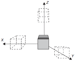 Согласно мировой системе координат, по оси Х объекты перемещаются слева направо и справа налево, то есть горизонтально. По оси Y объекты перемещаются к наблюдателю и от наблюдателя, то есть к нам и от нас. Ось Z соответствует перемещению вверх и вниз, то есть по вертикали.
