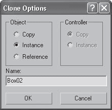 Чтобы выбрать нужный тип создаваемого клона, следует в окне Clone Options (Параметры клонирования) установить переключатель в необходимое положение. Существует три типа клонов: