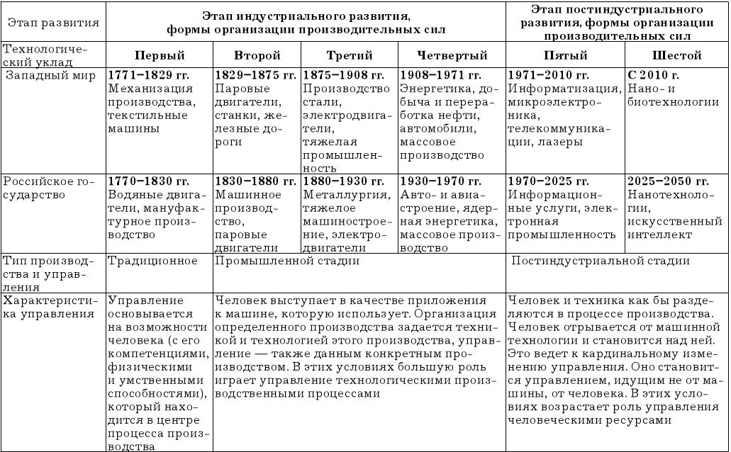 Можно выделить следующие типы управления, в разной степени зависящие от уровней развития средств производства: управление традиционное, управление на промышленной стадии, управление на постиндустриальной стадии (табл. 1.2).