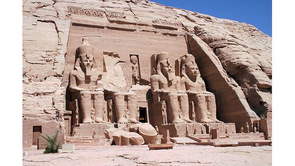 Храм был построен в XIII веке до н.э. по приказу фараона Рамзеса II в честь его мнимой победы над хеттами. Четыре 20-метровые фигуры фараона Рамзеса II спокойно взирают в сторону Судана, как бы охраняя египетскую землю от нежелательных южных соседей-людоедов. Каждый из колоссов высотой около 20 м (ширина от уха до уха – 4 метра, рот шириной 1 метр) окружен многочисленными меньшими фигурами, которые изображают членов его большой семьи и детей, которых у него было более 200. Каждый колосс имел свое имя: «Рамзес – солнце царей», «Рамзес – владыка Двух земель», «Рамзес – любимец Амона» и «Рамзес – любимец Атума». В школьных учебниках и другой исторической литературе я не раз лицезрел это феноменальное сооружение, но если бы кто ни будь, сказал мне тогда, что я увижу эту необузданную красоту воочию, я бы не поверил. Билеты для посещения храмов нам обошлись по 80 фунтов.