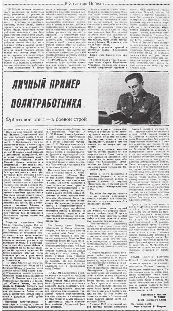 Одна из книг Ашика, о 305-м батальоне морской пехоты, досталась и мне – с дарственной надписью автора. Михаил Ашик стал признанным и широко известным литератором, и, думается, его имя могло бы украсить Союз писателей России. Являясь одним из руководителей Высшего политического училища МВД, он неравнодушно относился к своим молодым сподвижникам по перу. Заинтересованно относился к поэзии. Известен случай, когда Ашик наперекор общественному мнению заступился за молодого поэта В.И. Казакевича, которого отчисляли из училища за небольшую провинность. Но его не услышали. Против Казакевича выступили все, в том числе и политотдел училища.
