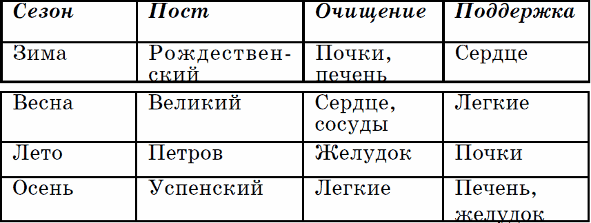 Церковь предписывает нам четыре многодневных поста: Рождественский пост – зимний, Великий приходится на весну, Петров пост начинается в июне, а Успенский – в августе, когда лето уже повернулось к осени. Четыре сезона – четыре поста.