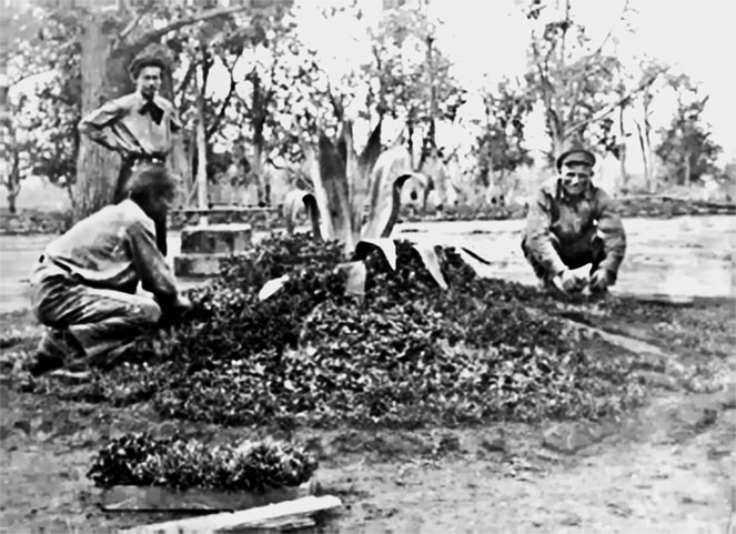 26. Первые колонисты-горьковцы. Слева направо: А. В. Зотов, П. П. Архангельский, Г. Л. Андриевский, Н. Ф. Шершнев. Студенты. Фото 1927 или 1928 гг.