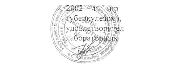 Из истории болезни №669 туберкулезного больного ГУ НИИ ПиФ известно, что 10.03.2005 поступила Гордеева К. С. Направлена Новополоцким городским противотуберкулезным диспансером с диагнозом «Двухсторонний хронический пиелонефрит, симптом нестойкой ремиссии. Двухсторонний туберкулезный папиллит?». Из листка назначений: ибупрофен 1табл. хЗр, сердечный коктейль, вильпрофен 15мл хЗр. Результат микробиологического исследования мочи №2267 от 14.03.2005, получен результата 15.03.2005: «посев роста не дал»… 17.03.2005 осмотр гинекологом. Диагноз «Опущение передней стенки влагалища». Дан совет по режиму… УЗИ от 18.03.2005: «УЗИ картина хронического воспалительного процесса в левой почке»… Обзорная рентгенография грудной клетки от 15.03.2005: В легких видимых очаговых изменений не определяется»… 16.03.2005 РРГ с гиппураном |311 в вену 0,274 мБк. Лучевая нагрузка 0,02 мЗв. Заключение: СЭФ почек не нарушена»… Рентгенография поясничного отдела позвоночника от 23.03.2005: «определяются явления деформирующего остеохондроза, нестабильность сегментов Li – L3». Цистоскопия от 24.03.2005: «Емкость мочевого пузыря 200,0мл. Слизистая бледно-розовая, сосудистый рисунок выражен. Устья мочеточников щелевидные, расположены на 5 и 7 часов. Патологии нет». Бактериоскопия мочи на БК, дата взятия материала