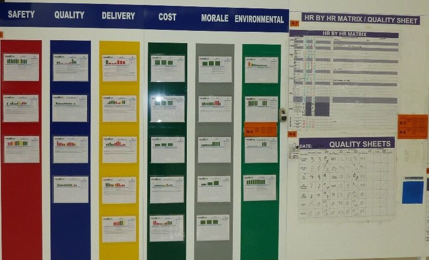 SFM – управление из места создания ценности. Это комплексный подход к управлению, все постулаты которого не опишешь в книге такого небольшого объёма, как эта. В это направление подходит вся визуализация, связанная с управлением, начиная со стандартных рабочих распорядков, проблем и ключевых показателей и заканчивая планами работ и расстановкой персонала.