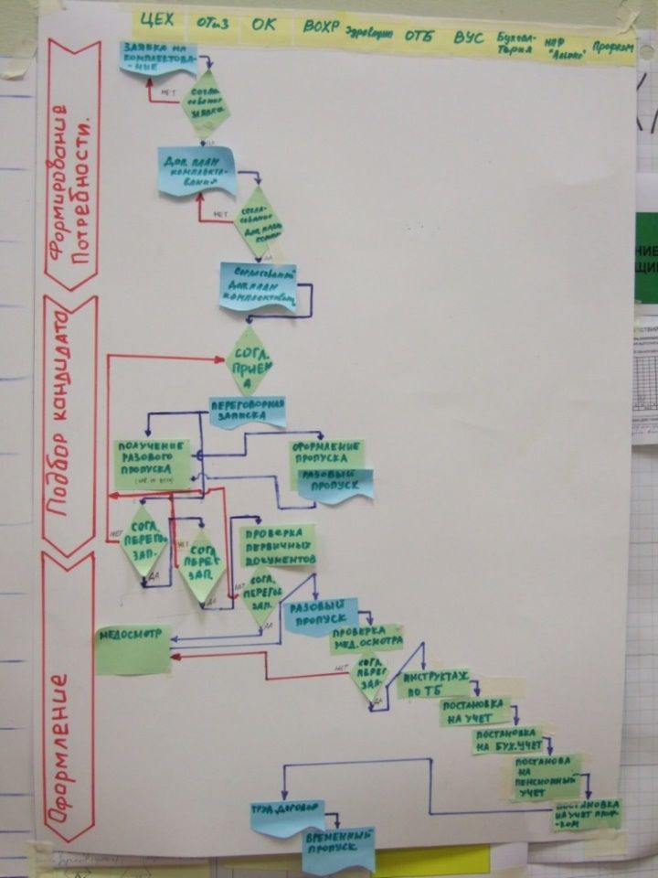 На следующем рисунке изображён рабочий макет доски канбан. Макет – потому, что доска на данной фотографии находилась на стадии запуска. Однако, а уже выполняла ряд важных функций.