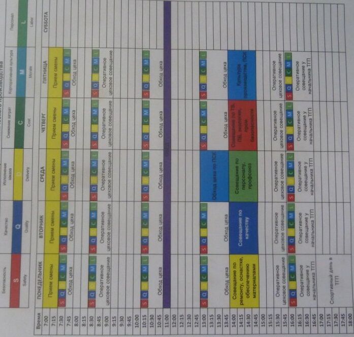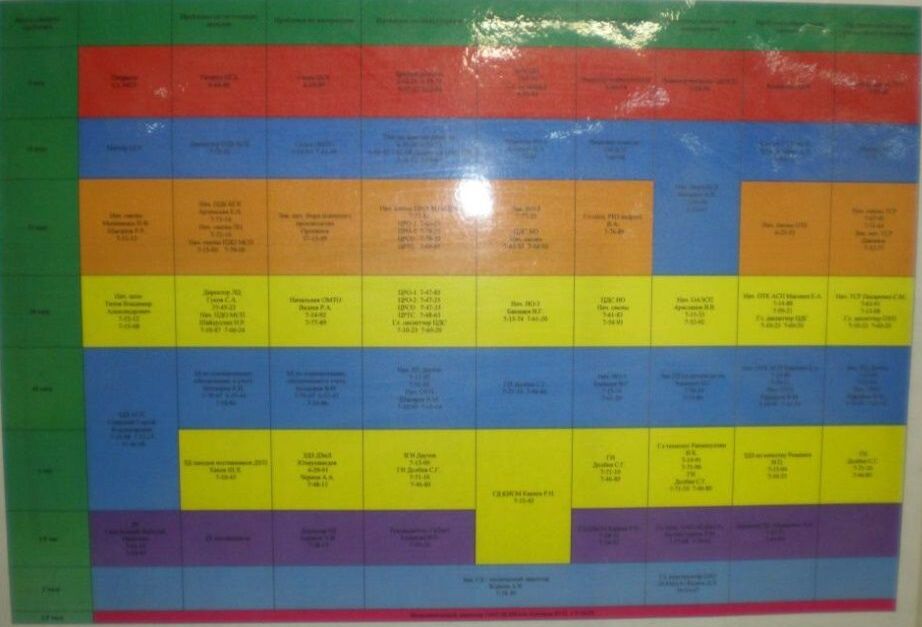 В продолжение вопроса о персонале, следующий пример – доска расстановки персонала. Данный пример взят из реальной практики (причём, Российской), он достаточно сложный для восприятия и внедрения, однако рассмотреть его будет интересно.