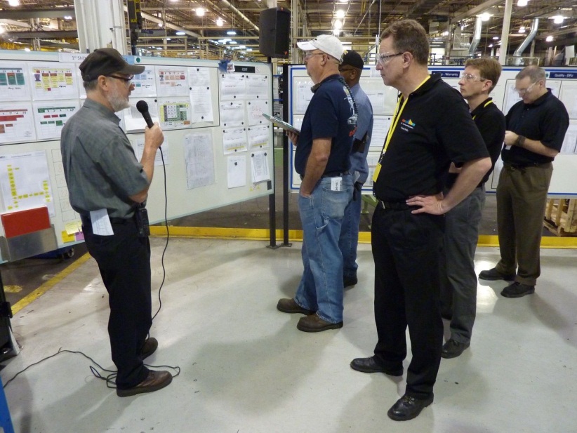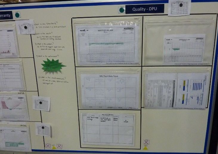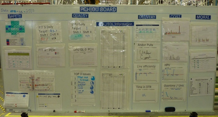 Проблемы также фиксируются в письменном виде в соответствующие формы на информационном центре. Одно из преимуществ системы с точки зрения представления информации заключается в том, что все видят взаимосвязь отклонений и проблем. Другими словами, сформулированная и записанная проблема должна обязательно влиять на отклонение того или иного показателя от норматива, т.е. решив проблему с большой вероятностью отклонение в значении ключевого показателя должно исчезнуть. Таким образом, вряд ли кто-то будет писать удобную, простую, или не обдуманную проблему. Это приучает людей к культуре прозрачности, приучает не скрывать, а наоборот – выносить и показывать проблемы, решая их лицом к лицу.