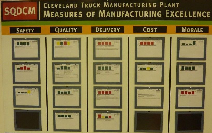 В разных условиях и на разных предприятиях применяются разные цветовые обозначения, однако всегда красный цвет – цвет, бросающийся в глаза, показывающий, что в определённом процессе есть отклонение или проблема.