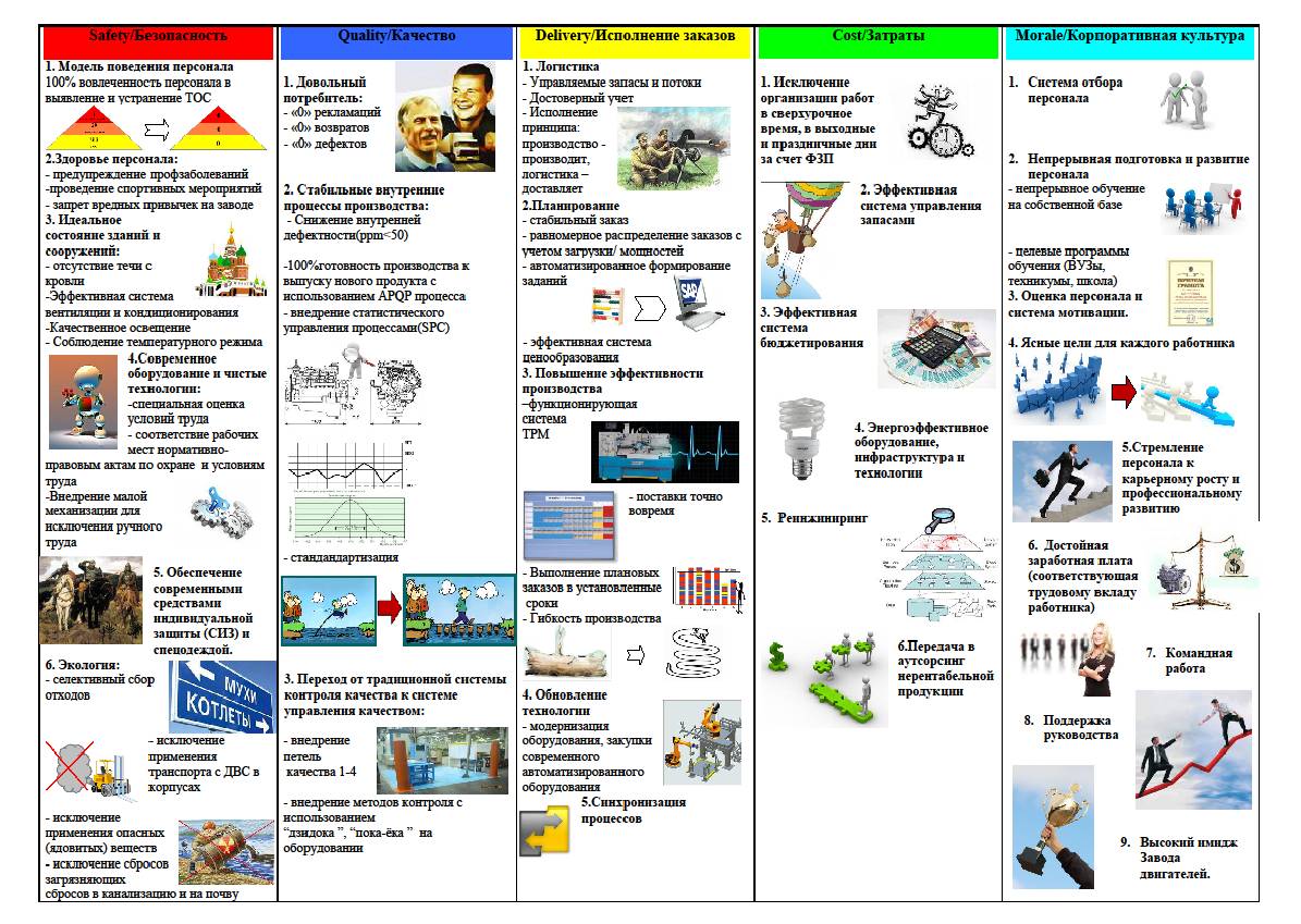 Следующий пример – баннер BlueSky. Это видение развития предприятия или организации, выраженное в наглядном виде. Подробней о функциях баннера, методике проведения Сессий стратегического развития, а также в целом о реализации стратегии предприятия подробно описано в книге «Реализация стратегии по принципу «Заказчик – Поставщик».