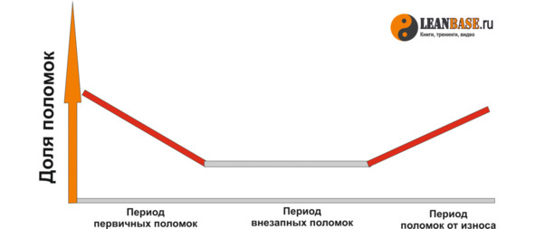 Если говорить о количестве поломок, то жизненный цикл оборудования с момента его эксплуатации можно разделить на 3 периода: