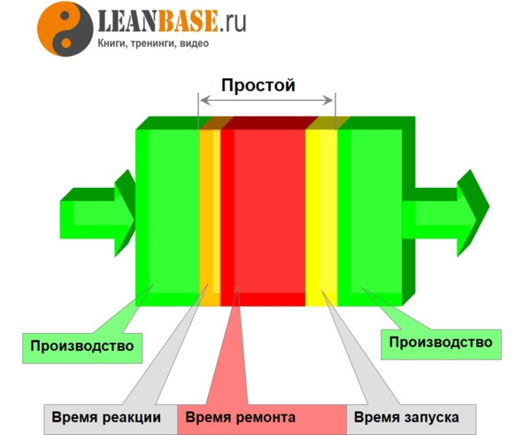 Следующее понятие, которое часто встречается в настоящей книге – это простой. Простой – это время. Когда оборудование стоит, т.е. не жужжит, не пыхтит и не производит продукт.