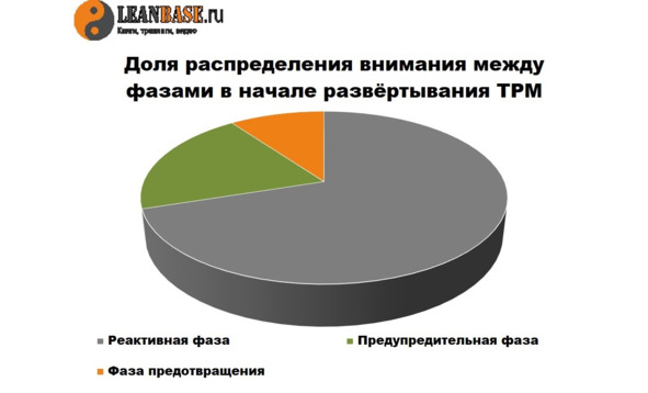 Как правило, работа в направлении развёртывания TPM, применительно к повышению эффективности работы оборудования, начинается с реактивной фазы, точнее, с её оптимизации и улучшения. Если поломки происходят, от этого никуда не денешься, и нужно уметь их быстро устранять. О направлениях и методах оптимизации реактивной фазы подробнее рассказывается на протяжении всей книги в частях Автономное обслуживание и Профессиональное обслуживание.