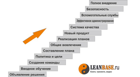 Следующая классификация является классической, т.к. она приводится в различной литературе, описывающей подходы TPM. Она более подробна и состоит из 13-и шагов. Эти шаги проходило большинство организаций, успешно применяющих систему TPM.