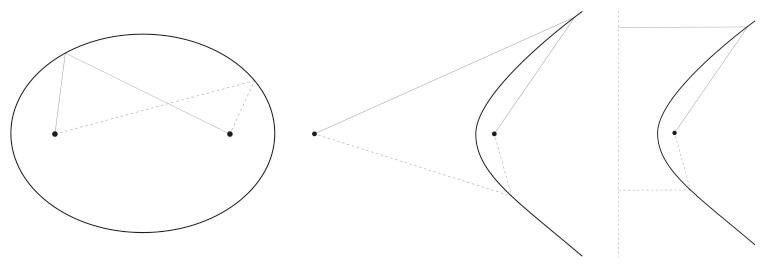 Рис. 1.5. Орбиты: эллипс, гипербола и парабола