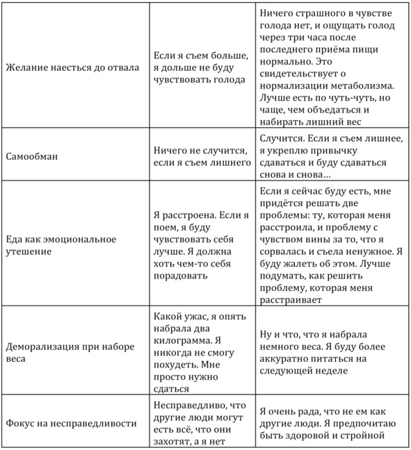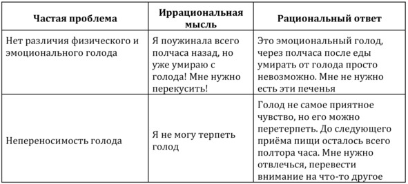 В этой книге мы будем учиться выявлять иррациональные мысли и формулировать рациональные ответы на эти мысли, таким образом изменяя их и замещая. Мы также будем идентифицировать триггеры, вызывающие иррациональные мысли, ведущие вас к неправильному и вредному питанию. Ведь распознавая триггеры, вы сможете минимизировать их воздействие или менять свою ответную реакцию.