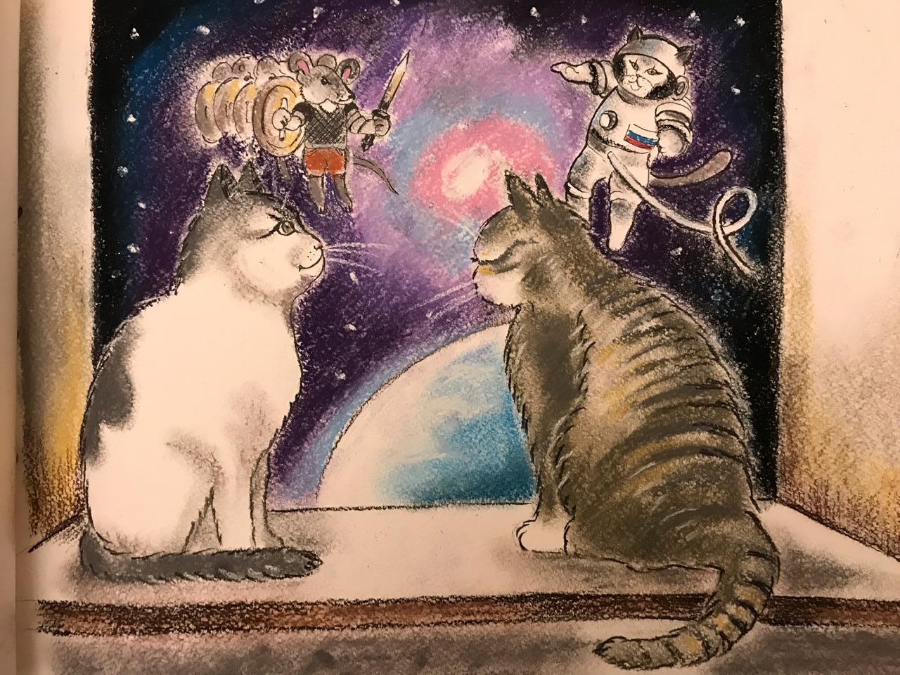 –Нет, я об этом мечтала, когда была голодным бездомным котёнком. А теперь я важная кошка. И мечты у меня важные. Я мечтаю узнать всё о звёздах, и когда-нибудь слетать к ним. Знакомая собака говорила, что у них есть первая собака-космонавт. А наших там ещё не было. Я люблю смотреть на звёзды, когда темно.