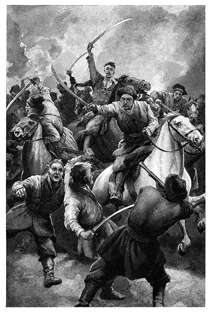 – Люди добрые! Что стряслось! Чего вам здесь надо? – спросила она, не опуская глаз перед грозными взглядами и зловещим блеском обнаженных сабель.
