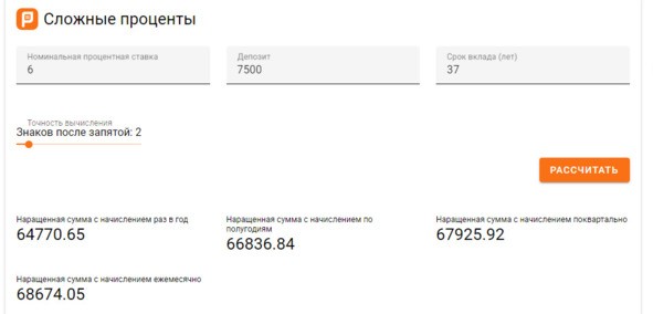Теперь считаем сложные проценты, как в банке, за давность не оплаченного долга.