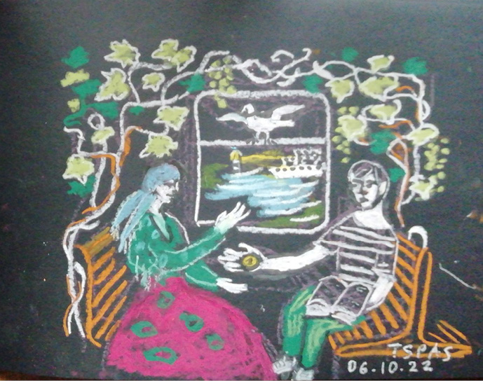 Фея, казалось, скучала; в легком летнем платье, она сидела у окна с закрытыми глазами. Её распущенные золотистые волосы дремали на открытых плечах.