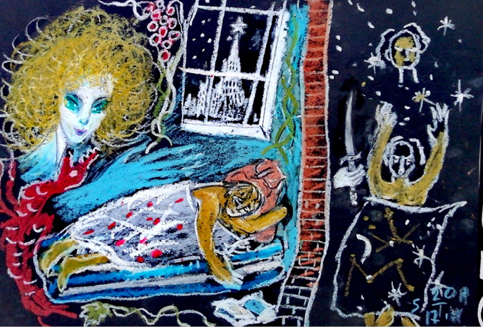 В маленькой каморке Джи и Феи было тесно, и я спал на полу, в углу возле стола. Проснулся я в три часа ночи от странного ощущения опасности. В темной комнате царило безмолвие, только тиканье часов нарушало напряженную тишину. Яркое пятно луны притягивало взор: она словно манила на улицу, обещая таинственное приключение. Я поддался её мягкому зову и вышел из квартиры. Меня насторожила наэлектризованность темного пространства, но все же я стал медленно, держась за перила, спускаться по лестнице. В углу лестничной площадки третьего этажа я заметил притаившуюся женщину. Я постарался незаметно проскользнуть мимо, но она крепко вцепилась в мое плечо, и я увидел сверкающие ненавистью глаза. Оставив клок одежды в ее когтистых пальцах, я выбежал на пустынную улицу. Была полная луна; воздух дышал опасностью. Деревья серебрились в холодном лунном свете, навевая ужас. Я побежал к церкви, надеясь укрыться там, но, потеряв дорогу, свернул не в ту сторону, и вдруг оказался на кладбище. Я хотел было повернуть назад, но леденящий душу крик за моей спиной погнал меня вперёд. Вокруг меня кривым частоколом расходились кресты старых могил. Тень женщины хищной бестией скользила за мной. В середине кладбища я наткнулся на одинокую девушку, с сумеречным взором птицы. Испугавшись ее прозрачного тела, я отпрыгнул в сторону и, зацепившись ногой за бетонную плиту, свалился на землю. Вдруг рука нащупала на земле острый кинжал. Я вскочил и с ужасом увидел перед собой искаженное ненавистью лицо преследовательницы; в её глазах отражалась смерть. Я резко взмахнул длинным лезвием кинжала, и её голова покатилась по земле с глухим стуком.