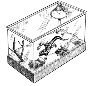 При устройстве обогревательной системы необходимо создать в террариуме небольшой перепад температур, чтобы животное могло самостоятельно выбирать себе место, где оно лучше всего себя чувствует. Можно использовать для обогрева лампы с зеркальным напылением, которые направляют на какое-либо место, а остальная часть террариума остается вне зоны обогрева.