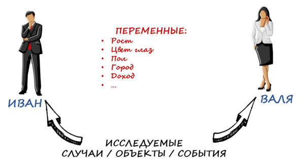 Например, на рис. 11 в качестве примера приведены Валя и Иван – это объекты / случаи / наблюдения.
