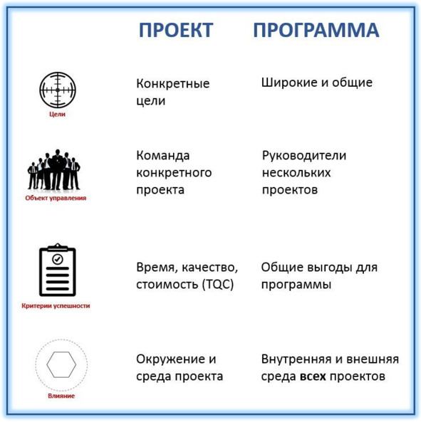 Отличия между проектами и программами есть на лицо даже поверху (рис.1.2):