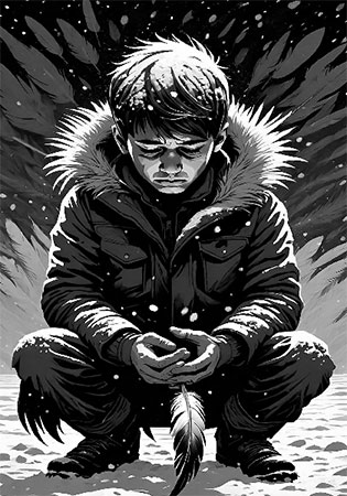 Льдинки скользят по коже,Скользят по венам —Вечные иглы, крошево, порошок.Шаткое время, лёгкое до измены.Мелкой крупою ветер лицо обжёг,Глупо смеётся, перья позёмкой носит.Новые маски лепит себе зима.Маленький мальчик, ангел-оруженосец,Нежные крылья льдинками обломал.Боль и обида точат, пронзают душу.Доброе сердце вымерзнет в этой мгле.Липкая вьюга перьями от подушекДетские слёзы скомкает на земле.Ангел уходит. Льдинки пронзают сердце.Серые грани вырвут последний вздох.Добрые люди – им никуда не деться,В небо уходят красной густой водой.