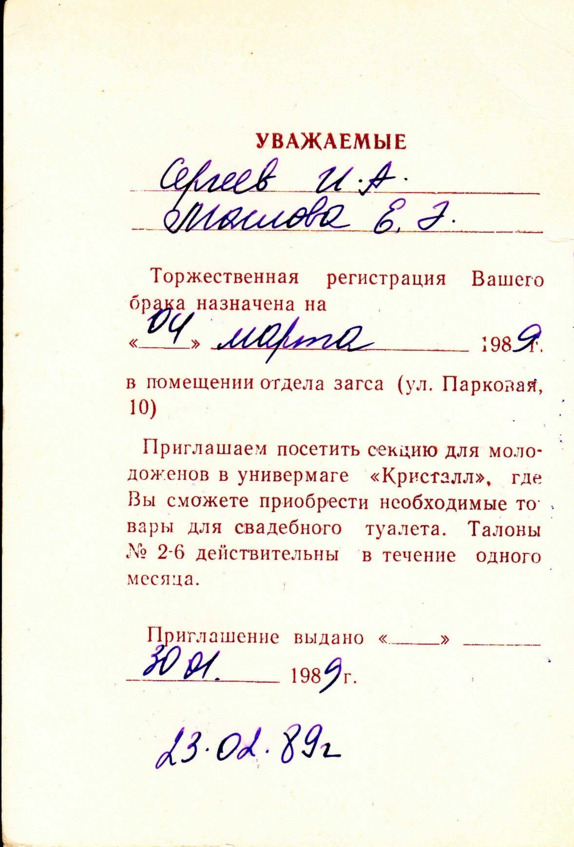 Затем мы вдвоем сходили и каждого из моих родных и друзей пригласили на свадьбу лично.