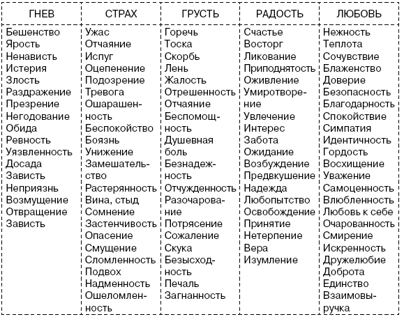 Предлагаю тебе сделать второе задание. Посмотри на эту таблицу эмоций.