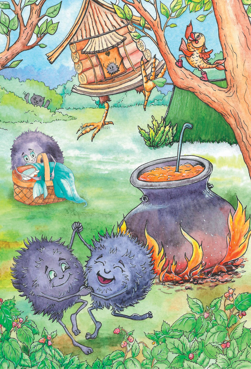 Оказывается, они с Котом почти сварили компот для погоды, но глупая рыба всё испортила. И получилось зелье, которое действует моментально, по первому слову. И Кот теперь Ёжкин, а Юа никто иная, как Ёжка собственной персоной. Ну или баба Яга по-простонародному. Дом отрастил куриные ноги, а зола превратилась в зо́лушек. Или золушко́в. Маленьких круглых существ, похожих на помпоны от шапки, с лапками-ножками, лапками-ручками и большими глазами. Эти крохи с удовольствием работают по дому. Помогают, а заодно озорничают и шкодят. Что с них взять – дети ещё.