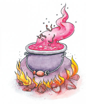 Из котла повалил розовый пар, а это значит, что что-то пошло не так. В книжке писали, что пар должен быть синий.