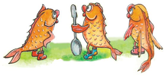 Ежу понятно, что рук у рыб нет. А плавниками до носа не достать. Поэтому, когда пар от зелья стал щекотать ей ноздри, рыбина смачно чихнула «А-апчхи-и!», выронив добычу прямо в котёл. Черви дождём посыпались в волшебное зелье, а рыба вздохнула и продолжила свой нелёгкий путь к гнезду.