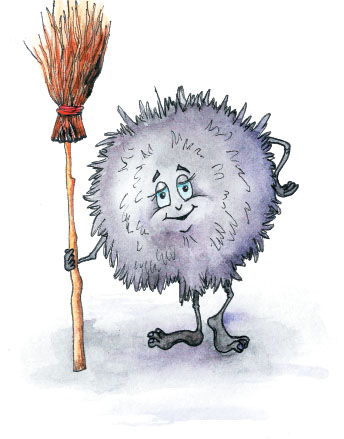 Из-под печки выскочили странные создания и моментально принялись за уборку.