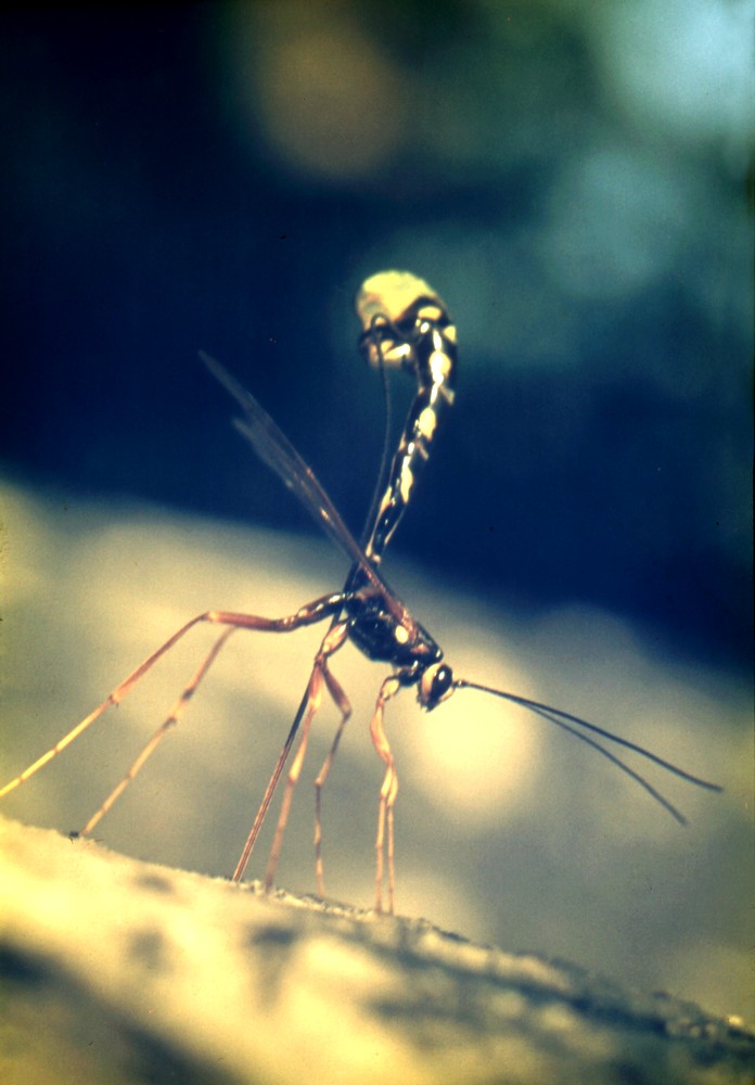– Ой, смотри, какая стрекоза! – сказала Вика, когда я уже свернул с дороги и, держа наготове фотоаппарат, на цыпочках приближался к диковинному существу, сидящему на стволе березы. Солнце, опускаясь, желтело, и крылья «стрекозы» отливали золотом. Я приблизился на достаточное расстояние и, не дыша, начал прицеливаться. На матовом стекле видоискателя появилось наконец резкое изображение гигантского наездника, залитого золотыми солнечными лучами. Мало сказать, что он был хорошо сложен – он был изящен. И странен. Очень длинные ноги, длинное гибкое туловище, тонкие усы, узкие прозрачные крылья. И непропорционально большая шпага на конце брюшка – яйцеклад. В столь оригинальном его строении все, казалось, было подчинено какой-то одной, пока еще неясной нам цели. И еще он непонятным образом напоминал мушкетера.