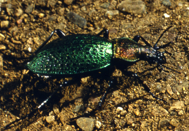 Есть жуки-хищники. Один подотряд так и называется – плотоядные жуки. К нему относятся, например, наши жужелицы. Вряд ли какое-нибудь другое существо на Земле может сравниться по кровожадности с жуком-скакуном из подотряда плотоядных жуков. Он очень красив – закован в зелено-бронзовые с металлическим отливом латы. Бегает жук-скакун с умопомрачительной скоростью, прыгает, летает, а безжалостные челюсти его похожи на два острых турецких ятагана и составляют большую часть головы… Есть же, наоборот, совершенно безобидные для других жуки-вегетарианцы. Например, кравчики. Они питаются зеленью. Личинки жуков-точильщиков едят старое дерево. Навозные жуки употребляют в пищу навоз. Жуки-мертвоеды – прекрасные санитары, так как уничтожают трупы. Есть такие, которые лакомятся исключительно цветочным нектаром, пыльцой или даже самими половыми органами цветка – пестиками и тычинками (жуки-нарывники).