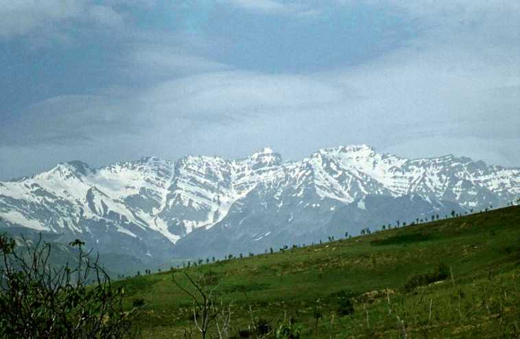 Впереди в сиреневом мареве застыли остроконечные белые вершины. Хотя и знаешь, что они далеко, однако именно потому, что видишь их целиком, от подошвы до пиков, кажется, что они – вот они, рукой подать, а взобраться ничего и не стоит… Но опускаешь глаза пониже – и понимаешь, что от их подошвы до того места, где мы с тобой, читатель, стоим, – целая страна лежит. Во-первых, широкая долина Пскема и сам Пскем – голубовато-зеленая полосочка, этакий намек – и тоже в сиреневой дымке. На этой стороне Пскема – крыши домиков, утопающих в зелени, – селение Сиджак. Много ближе – серая нитка шоссе и мост через наш родной Кайнар-сай. Вон он какой – широкий сравнительно, хотя здесь, где мы стоим (он от нас слева), его в зарослях и не видно. Совсем близко, рядом с дорогой, – деревянные домики пасеки, а справа… Справа – крутой склон, где поросший орехом и другими деревьями, где с оползнями, а наверху, на бровке, – желтая пена ферулы! И там же, конечно, лиловый спутник ее – мужественный эремурус…
