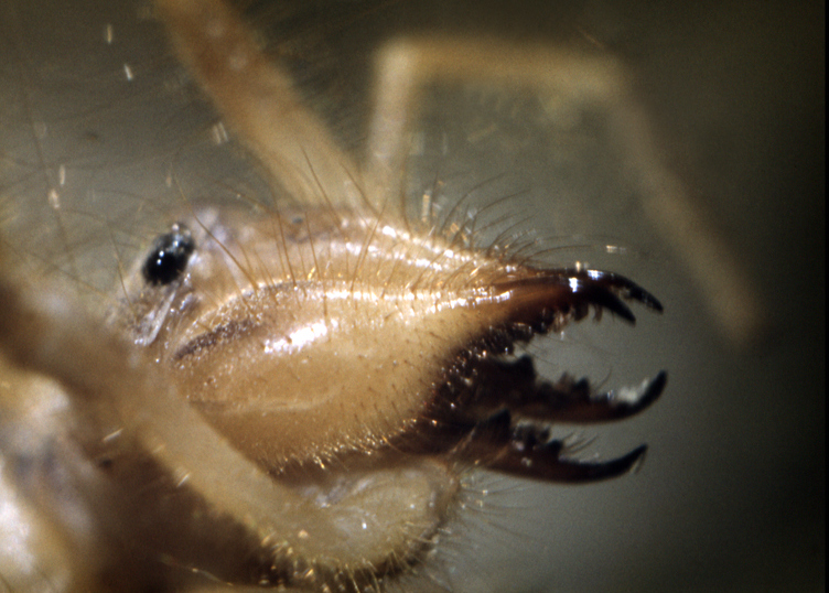 Но как же все-таки она выглядит? Так же как и многие люди, в жизни она выглядит гораздо лучше, чем на фотографии. При первом, поверхностном взгляде она, правда, кажется довольно-таки страшноватой. Она действительно похожа на большого паука с длинным членистым брюшком и мощной головой. Голова сверху напоминает острый, направленный вперед треугольник, конец которого раздвоен и оснащен длинными, очень грозными на вид зазубренными челюстями. Общая длина фаланги от острия челюстей до конца брюшка достигает иногда семи сантиметров, причем на голову приходится сантиметра полтора-два, а на челюсти – около сантиметра. С ногами крупная фаланга занимает овал длиною до 15 сантиметров. Ноги у нее длинные, обросшие золотистыми торчащими волосками. Волоски нужны фаланге не просто для украшения. Дело в том, что подавляющее число видов фаланг – ночные охотники, и чуткие волоски, улавливая малейшее движение воздуха, помогают отыскать жертву во мраке. Ног у фаланги не восемь, как у пауков, а десять. Правда, первая пара конечностей, педипальпы, – это не ноги, а скорее щупальца, на конце их нет ходильных коготков. Историческое происхождение этих ногощупалец у фаланг очень любопытно и великолепно демонстрирует ход естественного отбора и приспособление животных к местам своего обитания и образу жизни.