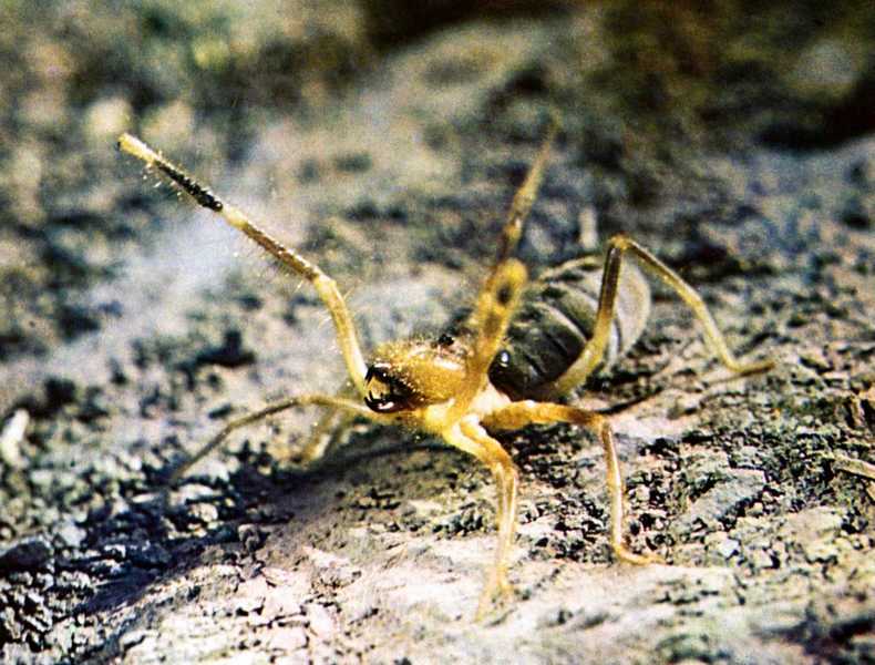 Все паукообразные, или арахниды, произошли от водных животных, так как жизнь на Земле вообще родилась в океане. А в воде условия жизни гораздо более однообразны, чем на суше. Поэтому предки арахнид были очень похожи друг на друга. Но вот началось великое переселение. Арахниды, как, впрочем, и всевозможные другие животные, стали вылезать на берег и заселять поля и леса, низины и горы. Вот тут-то и заработал великолепный механизм естественного биологического отбора. Виды, которые не могли выдержать новых условий жизни, вымирали. Выживали те, кто в результате мутаций получали от природы в подарок такие свойства, которые помогали приспособиться. Полезные свойства передавались по наследству. Рождался новый вид, более приспособленный. Мутации продолжали возникать. Те особи, которые внезапно получали еще одно свойство, ценное для жизни, оказывались в выгодном положении перед другими, выживали и давали многочисленное потомство.