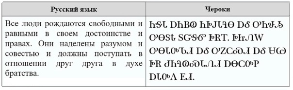 На рисунке 16 представлен текст перевода Статьи 1 Всеобщей декларации прав человека с русского языка на язык чероки. Мы наблюдаем лингвистические элементы тождественные результатам плоскостных проекций исследуемого устройства.