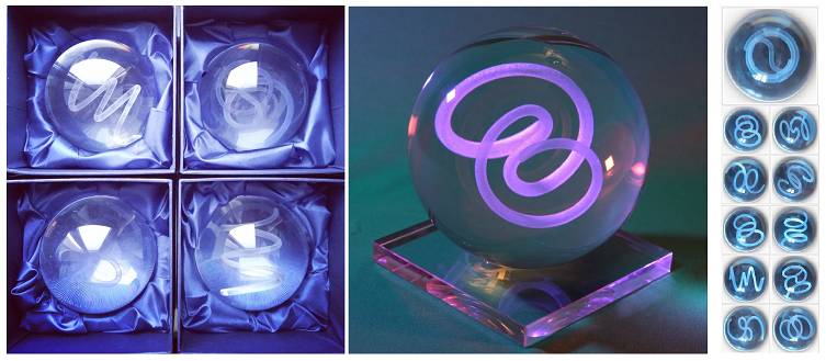 Фото 2 – чтение одним и настоятелей монастыря устройства протяжённой волновой частицы двух зеркально антисимметричных витков, объединённых промежуточной S-образной петлёй в шаре оптического стекла.