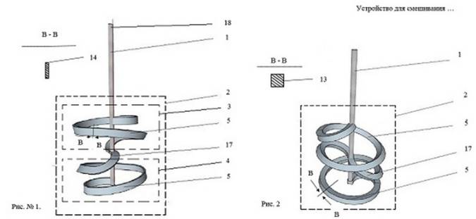 Устройство применимо в качестве миксера (рис.28). От лабораторного, кухонного до промышленного, от стационарного до мобильного, в десятках отраслях. Современный аналог основан на спиралевидных витках и однонаправленного движения смешиваемой массы, тогда как представленное устройство имеет встречные разнонаправленные витки, следовательно, увеличивает КПД ровно в два раза.