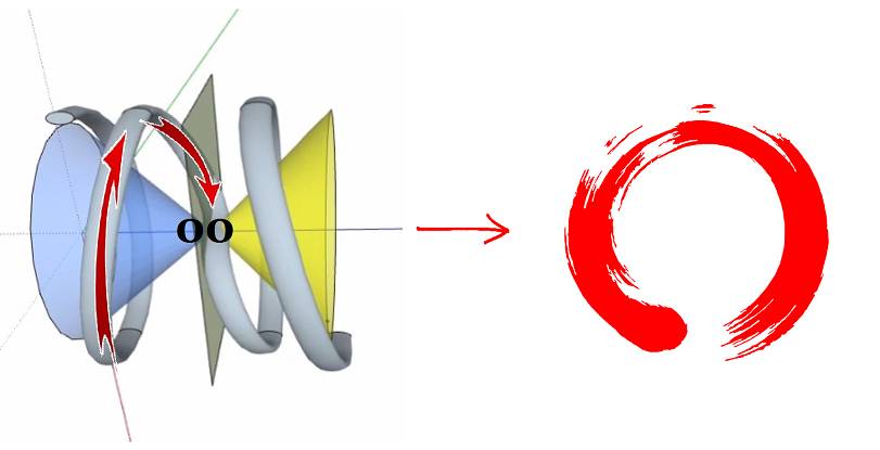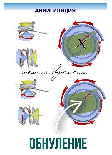 Процесс порядка следования событий указывает на переходное состояние через нулевое значение продольной координаты. Для наблюдателя модели с торца, как мы её видим справа на изображении, очевидный символ Великий Предел.